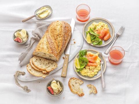 Sourdough loaf, crafted with a mild wheat flour that carries subtle notes of caramel and sweetness. Experience a rounded and long-lasting taste on the palate, complemented by its satisfyingly crunchy crust.