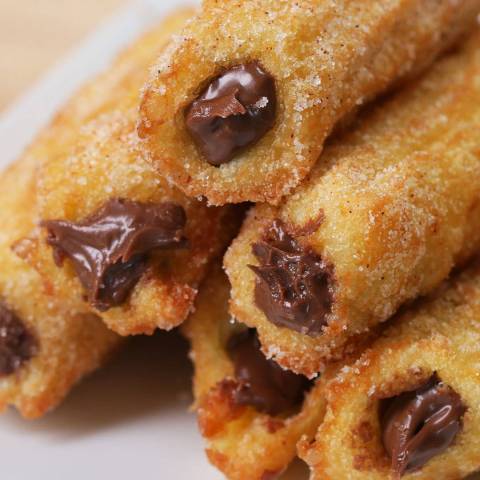 Crisp, tender and soft mini churros filled with chocolate/hazelnut cream.