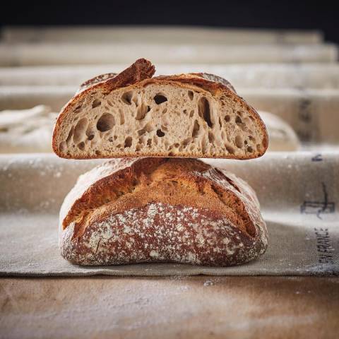 Wheat sourdough infused with buckwheat flour. Its rustic crust and the captivating aroma of caramelized honey offer a truly unique taste experience. Each loaf, hand-folded in four, embodies the craftsmanship of our artisan bakers.