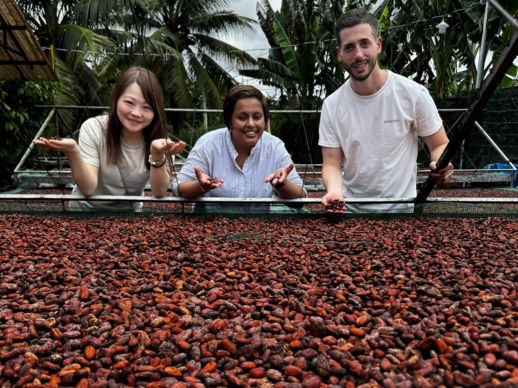 During Le Rendez-Vous, Weiss Chocolate and Eustralis Food organised a quiz for our guests, with the grand prize being a trip to Vietnam to visit the Li Chu 64% chocolate plantation and the Ben Tre region. Chef Guiral Delaporte, Pastry Chef at The Mondrian won the quiz and joined the journey alongside with long-time Eustralis Food client Yui Matsuzawa from La Renaissance Sydney, and Laurent Postiaux, our Queensland Sales Manager. The trip offered a firsthand experience of the Weiss plantation and a deeper understanding of sustainable chocolate production.