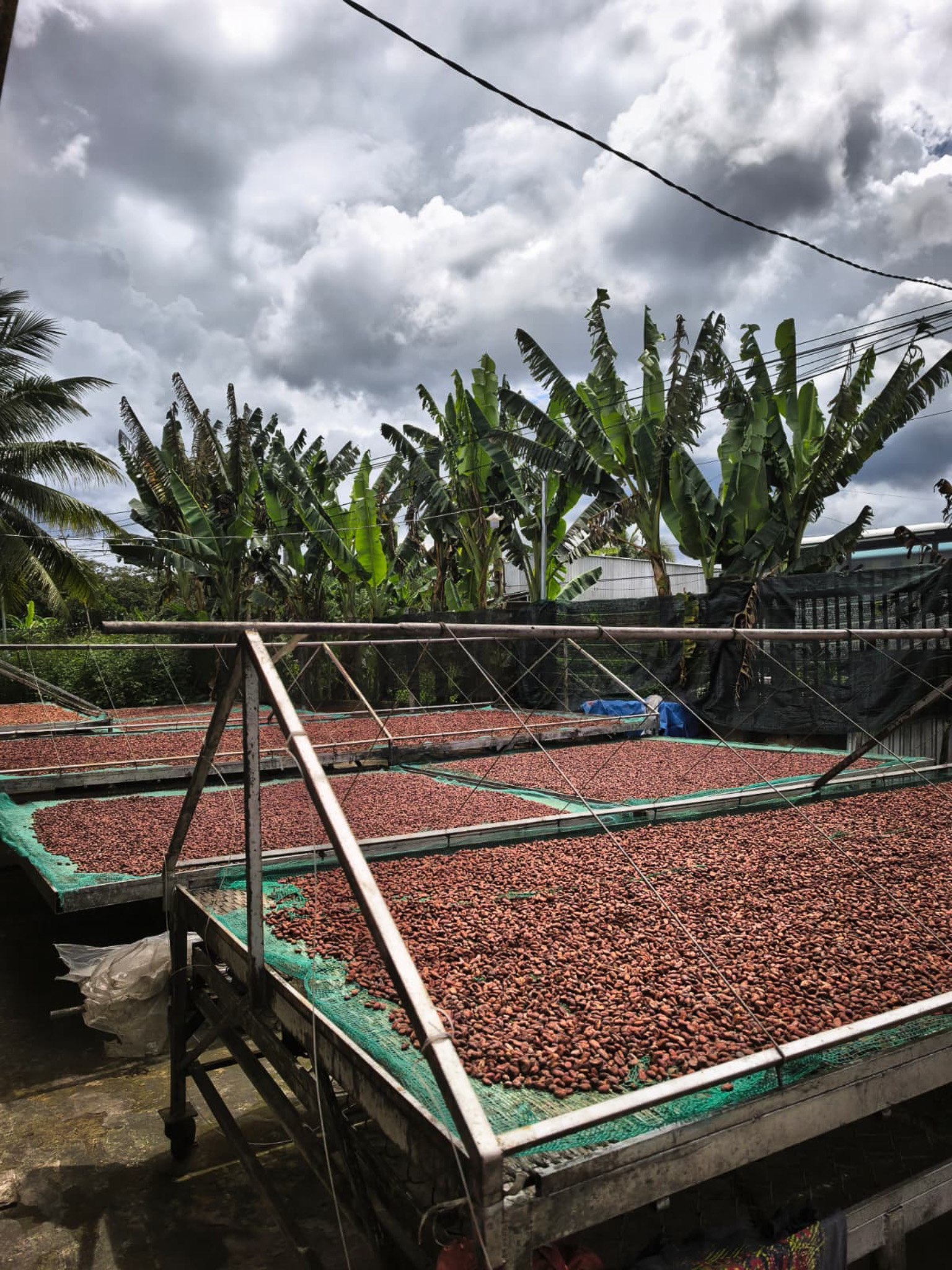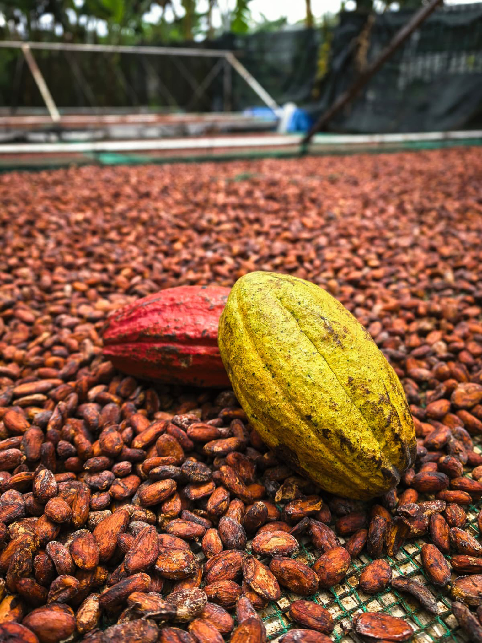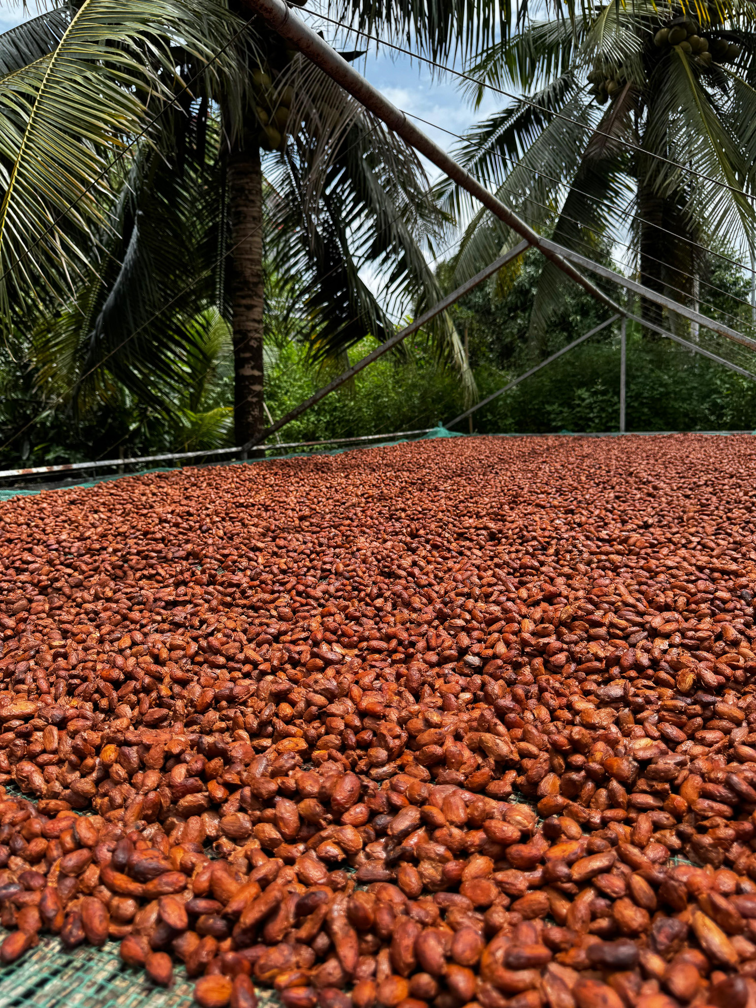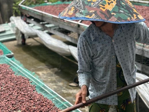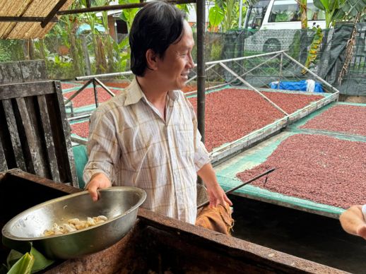 The Weiss plantation in Ben Tre, also known as the Coconut Region, is a place where expertise meets respect for nature. Surrounded by water from the Mekong River, the cocoa trees thrive under a natural canopy, offering the ideal environment for rich, complex beans. Laurent observed the full process, from harvesting and fermentation to drying.